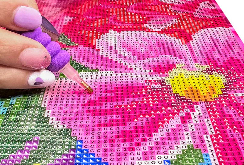 High-quality, pre-printed canvas with a sticky surface that holds each diamond perfectly in place.